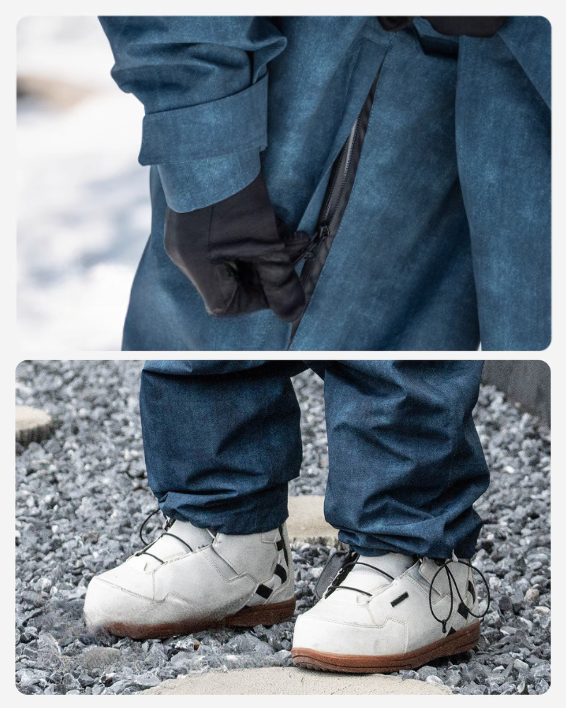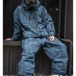 Ski Wear Denim Look Fleece-Lined Waterproof Ski Suit -Unisex